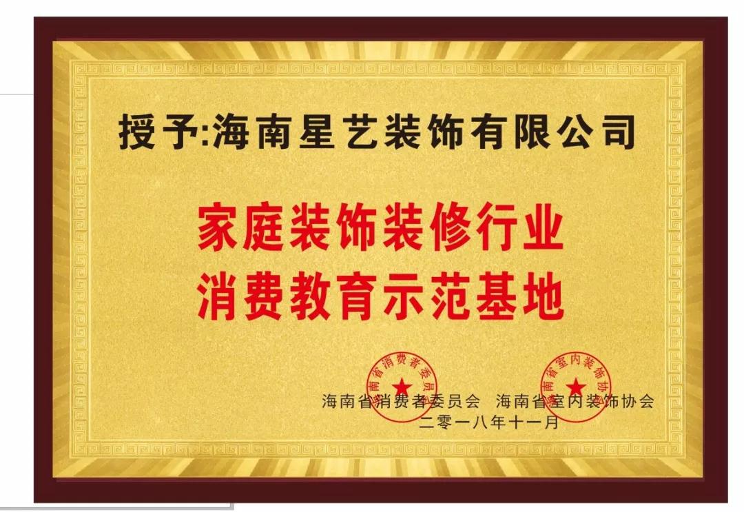 • 12.18 2018 海南星藝裝飾有限公司 “家庭裝飾裝修行業(yè)教育示范基地”