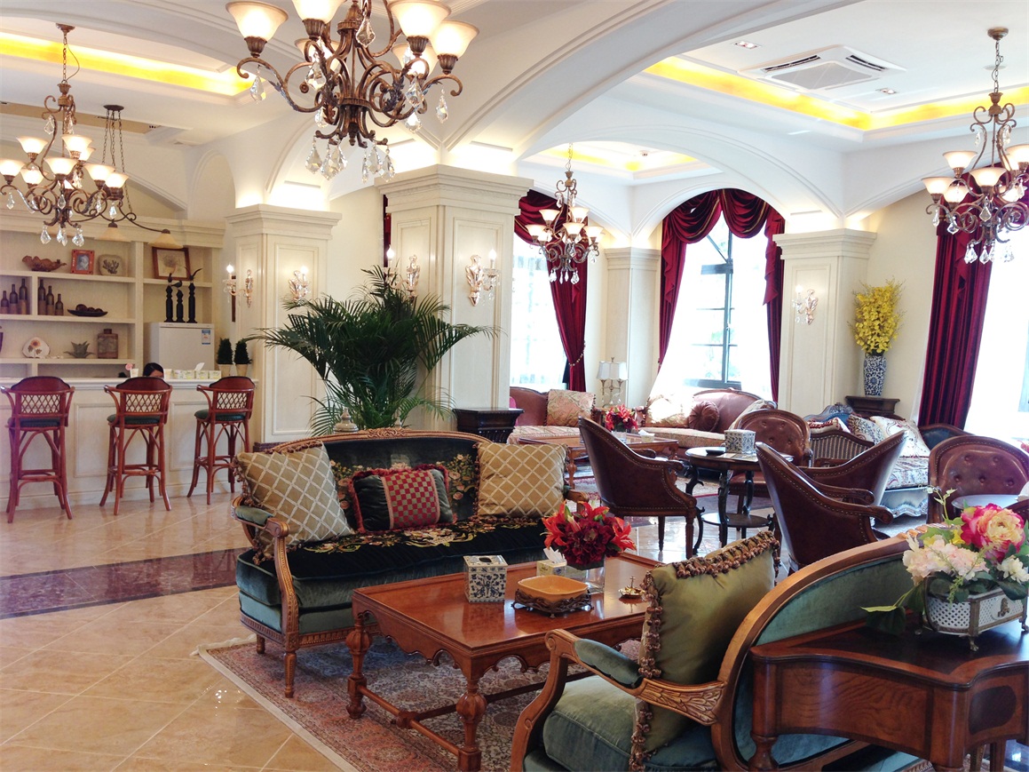 仿古磚、鐵藝、水曲柳面板、石材