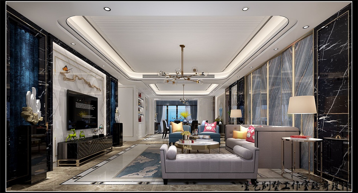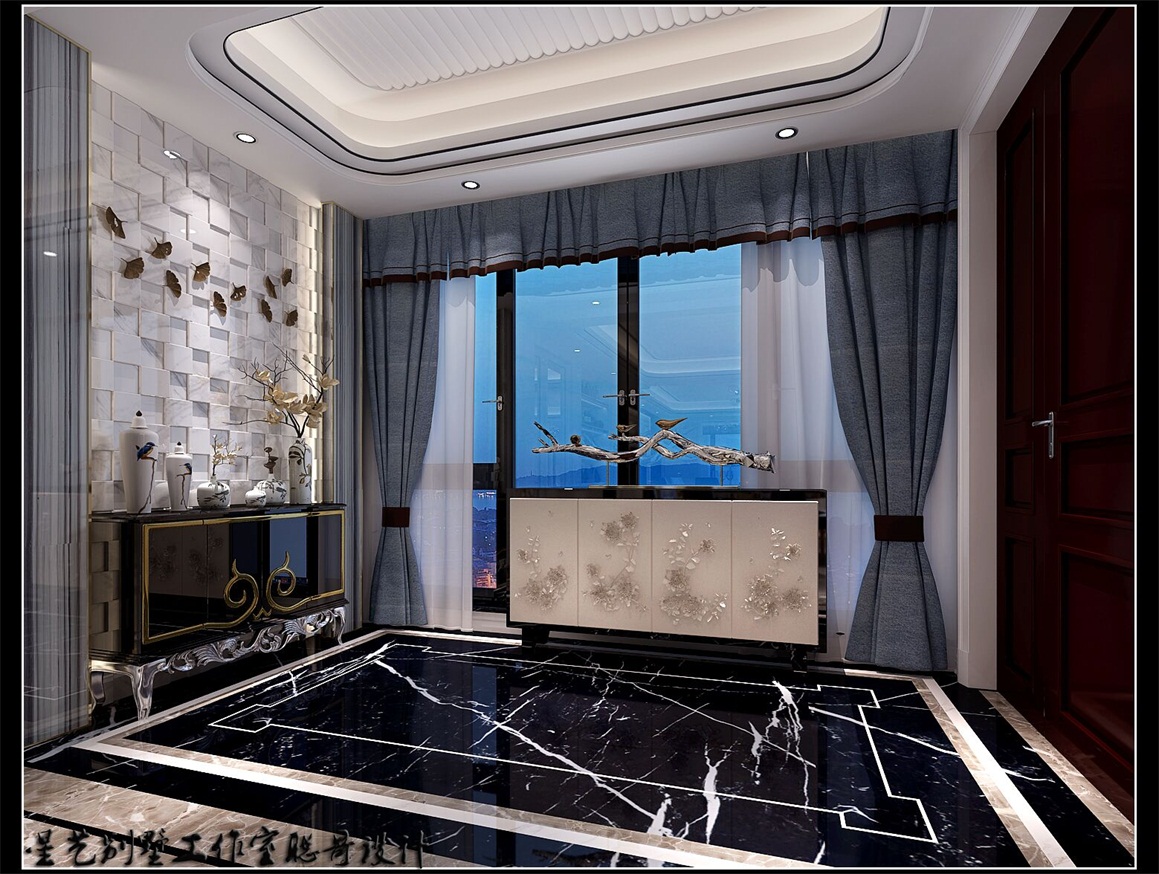 本案是一個(gè)大平層200多方,業(yè)主從事婚紗性質(zhì)工作,對(duì)顏色、造型存著大膽的想法,視覺(jué)沖擊力要強(qiáng),經(jīng)過(guò)多次的溝通,以混搭元素體現(xiàn),像入戶(hù)地面采用黑色,景觀(guān)采用白和灰綠,視覺(jué)沖擊力很強(qiáng),餐廳有點(diǎn)中式感覺(jué),大塊用色、形成鮮明的對(duì)比,達(dá)到業(yè)主的想要的空間。