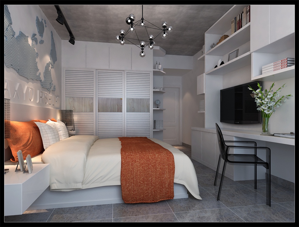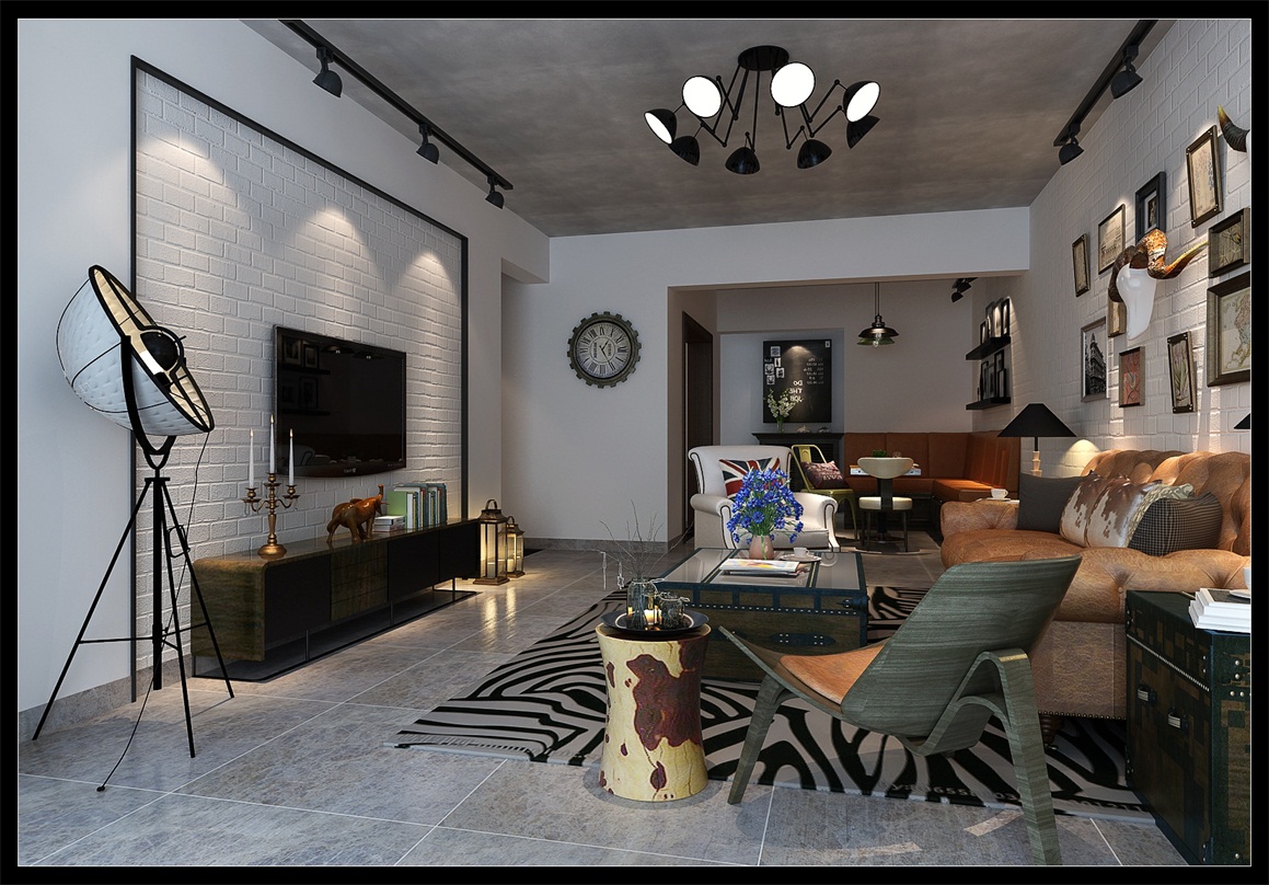 水泥漆、硅藻泥磚藝、黑色銅條、灰色地磚、黑板墻