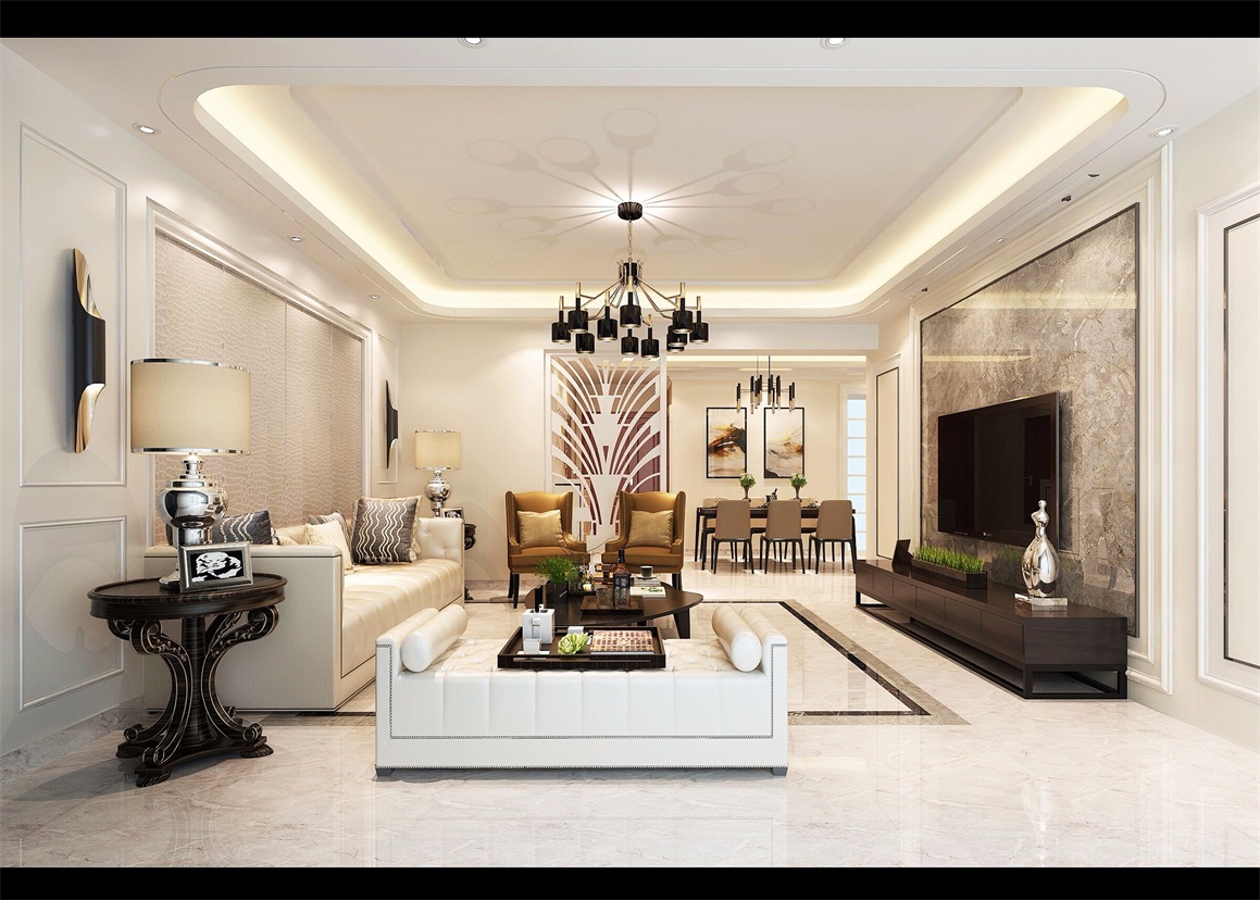 大理石、灰色地磚、藝術(shù)涂料、黑色不銹鋼,硬包
