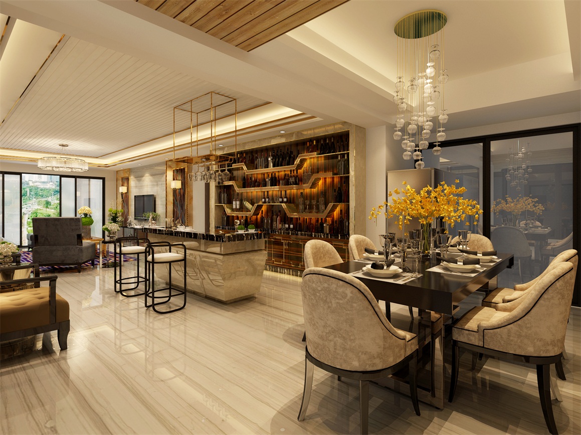 港式輕奢,是每一個(gè)享受高品質(zhì)生活的人的追求,是對(duì)生活的一種尊敬和熱愛(ài).本案設(shè)計(jì)的風(fēng)格為現(xiàn)代港式風(fēng)格,造型上客廳是以鋼琴烤漆木飾面為主背景,木質(zhì)紋理大氣明顯,以玫瑰金不銹鋼收邊;而餐廳的主背景是以非常簡(jiǎn)潔的鏡面裝飾,完美定義了空間的奢華與精致,地面的石材的紋路及天花上鑲嵌的不銹鋼條與整體設(shè)計(jì)相呼應(yīng),臥室背景墻也大量使用玫瑰金不銹鋼條裝飾結(jié)合柔軟的皮革面,摒棄了多余的裝飾品,簡(jiǎn)練的不銹鋼飾品在空間中闡釋了低調(diào)不乏奢華的基調(diào)。地面采用深色地板,更穩(wěn)重和貼近自然,充滿生活氣息,居于其中仿佛生活在優(yōu)雅和時(shí)尚中。