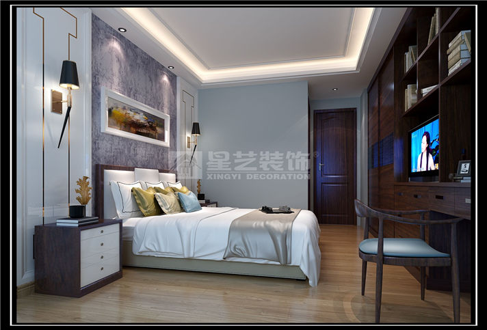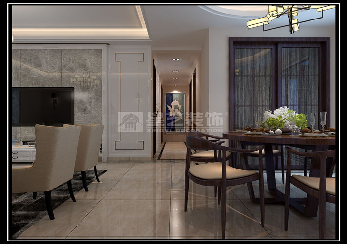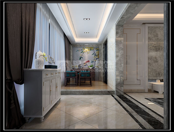 本案例主要采用了濃厚的中式元素,吊頂采用了古代的中式建筑中小亭過道的吊頂進(jìn)行設(shè)計,墻面進(jìn)行了簡單的刷漆,使得整體空間頂面到地面每個區(qū)域都劃分的非常明顯,但是很舒服,沒有突兀感。