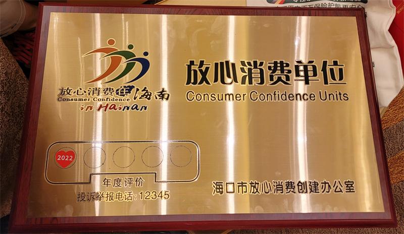 熱烈慶祝我司榮獲海南省放心消費(fèi)單位