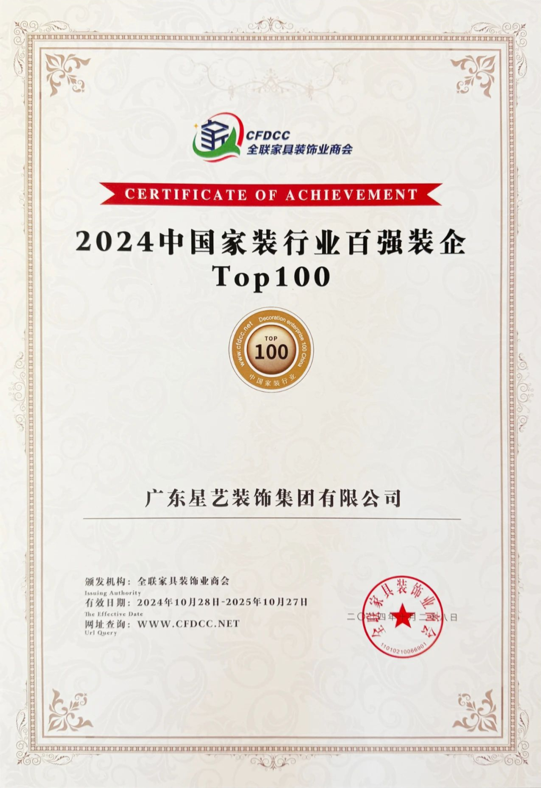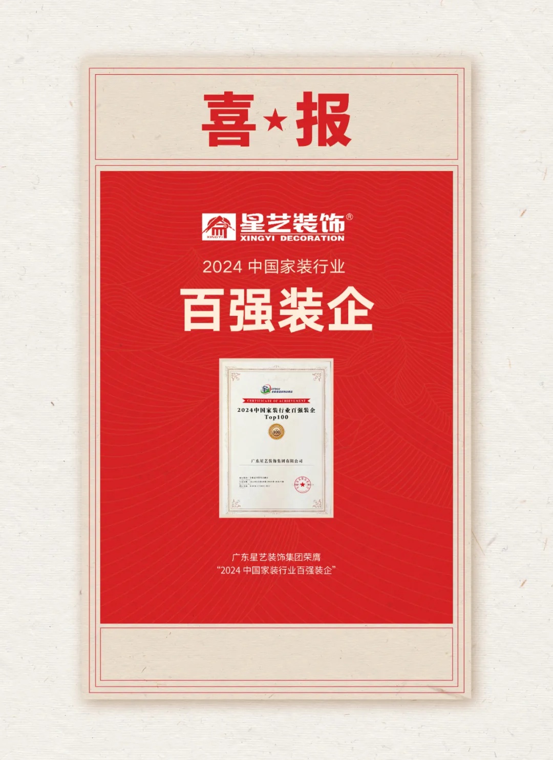 喜訊 | 星藝裝飾榮膺“2024中國家裝行業(yè)百強(qiáng)裝企”Top100