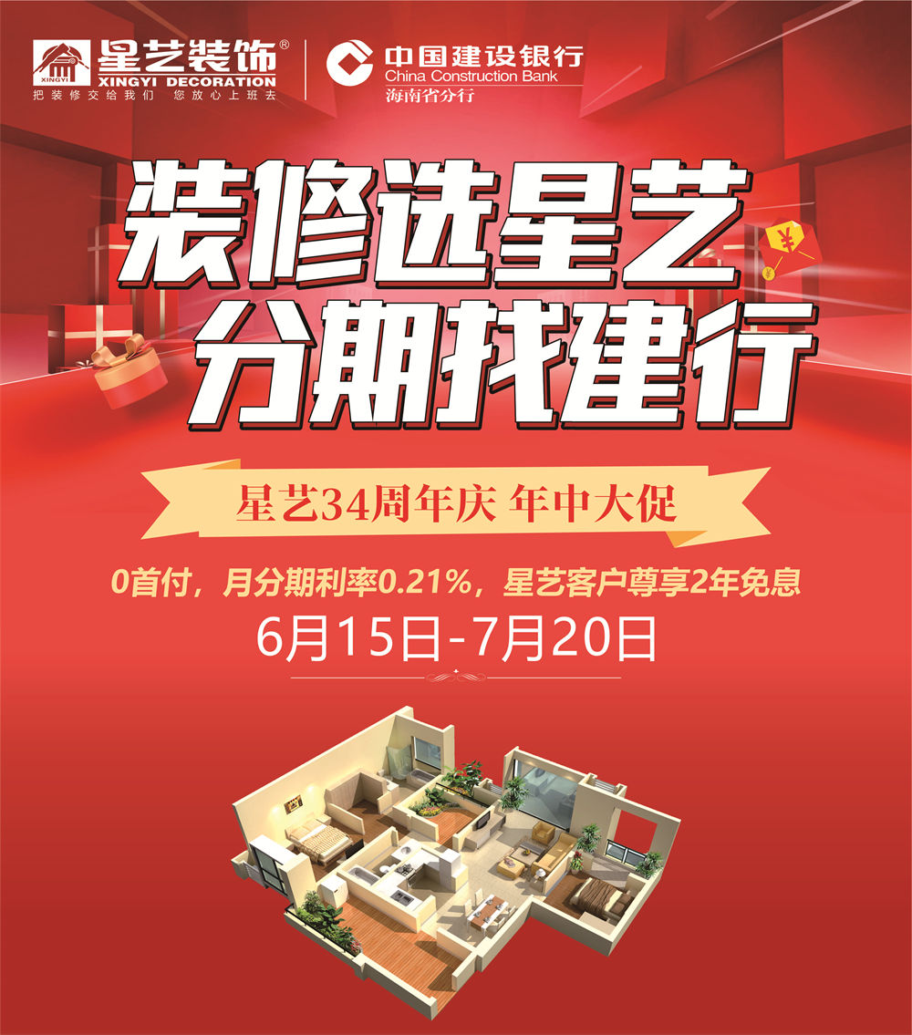 星藝裝飾34周年慶!年中大促『裝修選星藝 分期找建行』重磅福利來(lái)襲