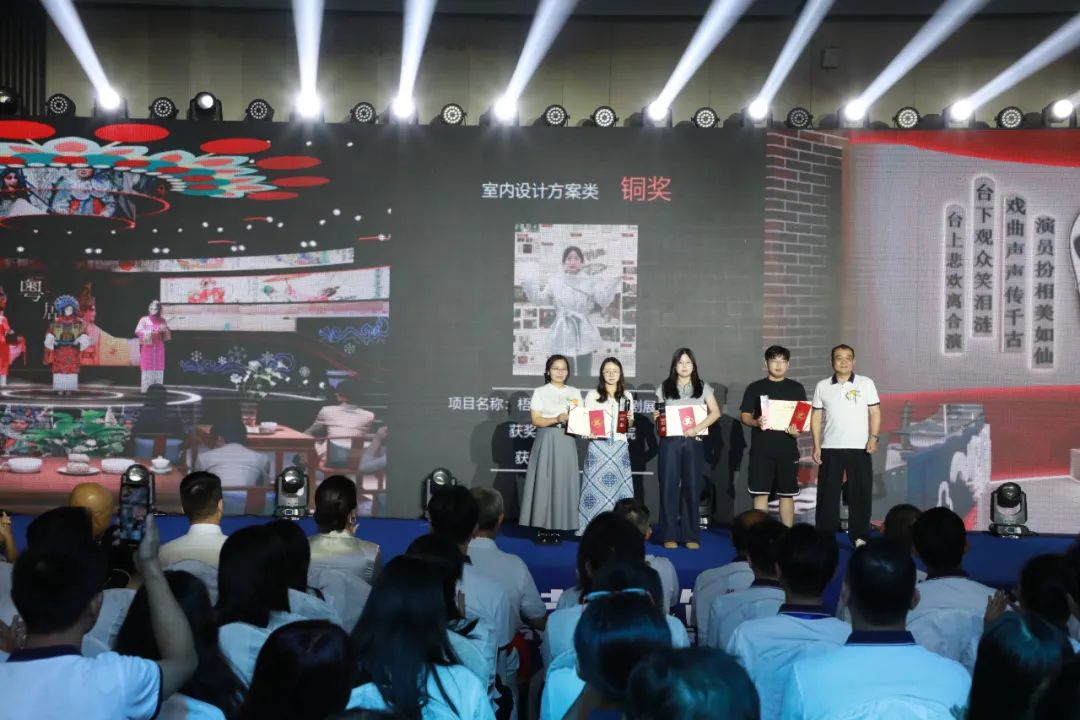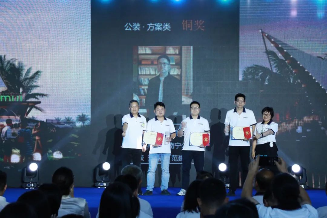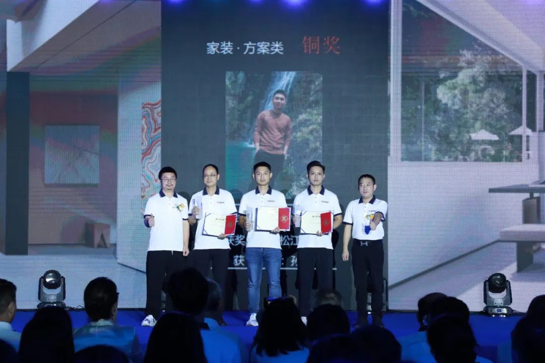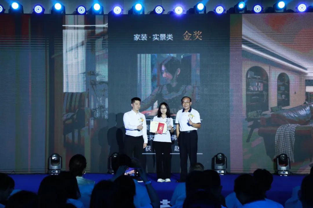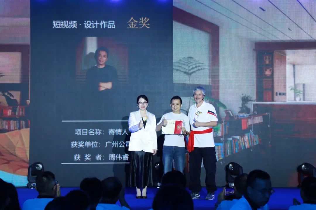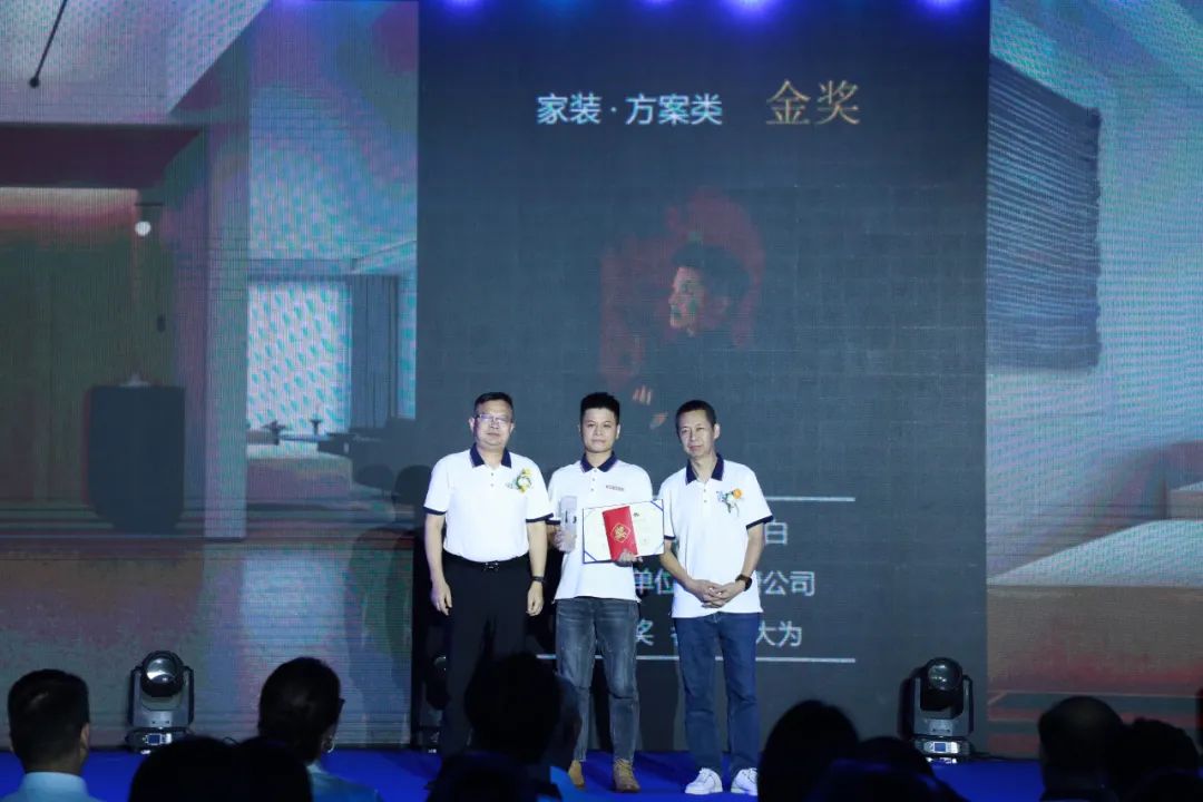 在頒獎盛典上,新塘公司張大為設計作品《逸白》斬獲家裝方案類作品金獎,佛山公司趙曉珍設計作品《棕韻新章》斬獲家裝實景類作品金獎,秦皇島公司劉文達設計作品《暮云歸》斬獲大宅方案類作品金獎,廣州公司張志威、張磊設計作品《柔弧·漾居》斬獲大宅實景類作品金獎,西雙版納公司熊衛(wèi)民設計作品《勐海民宿》斬獲公裝方案類作品金獎,佛山公司余文文、駱家駿設計作品《蔚見》斬獲公裝實景類作品金獎,廣州公司周偉睿設計作品《寄情人》斬獲短視頻作品金獎。