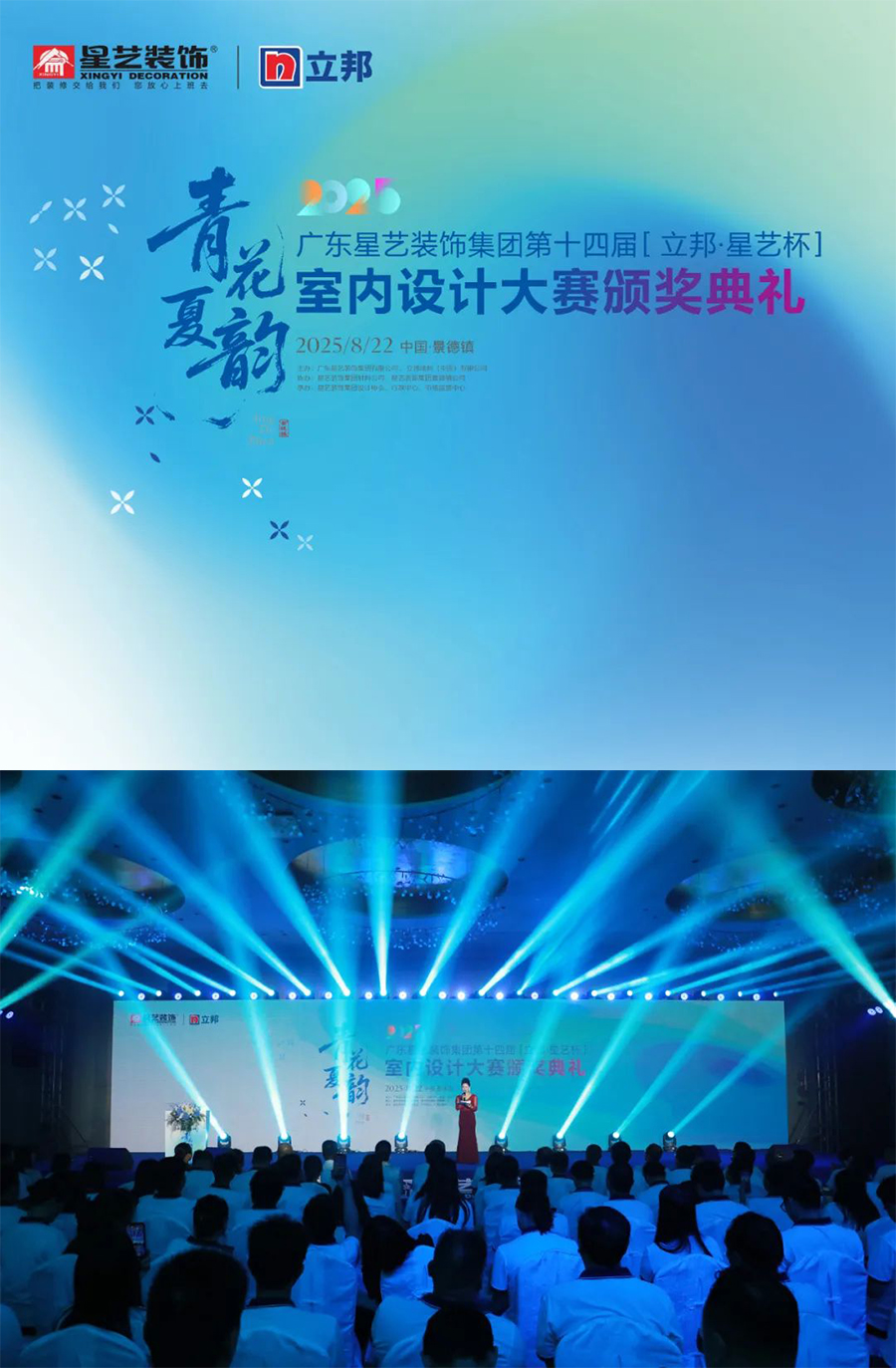 星藝杯,星設計。8月22日晚,由廣東星藝裝飾集團有限公司主辦,立邦涂料(中國)有限公司贊助,星藝設計理事會、星藝裝飾文化傳媒中心、行政中心、市場運營中心承辦,星藝集團材料公司、星藝裝飾景德鎮(zhèn)公司協(xié)辦的2025第十四屆“立邦·星藝杯”設計大賽頒獎典禮在景德鎮(zhèn)盛大舉行。