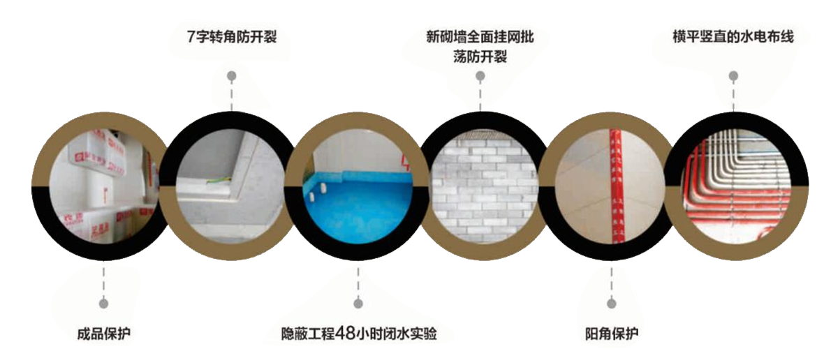 6大工種施工標(biāo)準(zhǔn)、8級質(zhì)量管理體系、100個(gè)工藝細(xì)節(jié),360道施工工序,更多節(jié)點(diǎn)設(shè)計(jì),更多品質(zhì)保障!